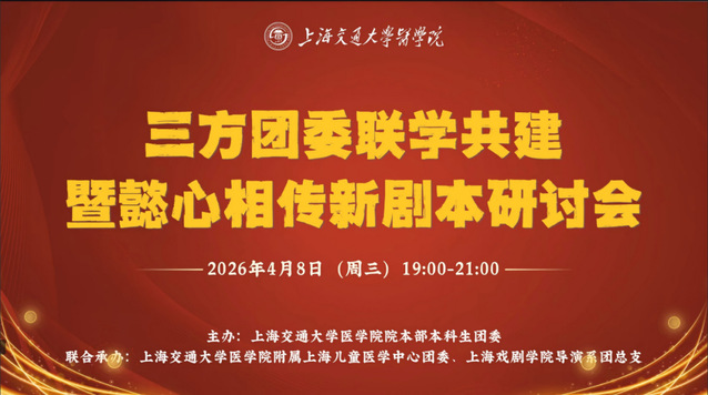 4月8日,为深化校际交流、推动医艺融合创新,近日,上海戏剧学院导演系团总支与上海交通大学医学院院本部本科生团委、附属上海儿童医学中心团委,以线上形式联合开展三方团委联学共建活动。